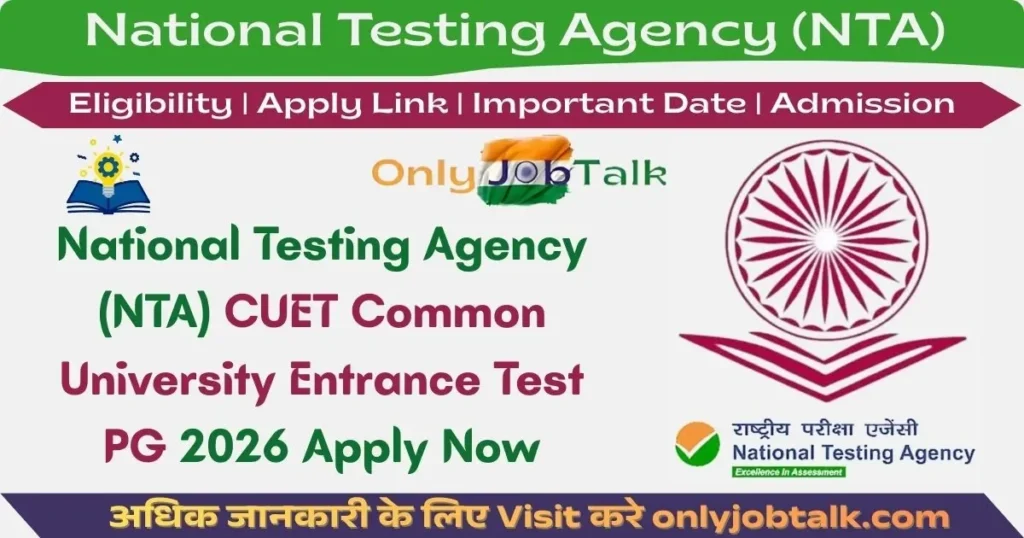 नेशनल टेस्टिंग एजेंसी (NTA) ने NTA CUET UG 2026 Admissions Online Form 2025 के लिए नोटिफिकेशन जारी कर दिया है। Common University Entrance Test CUET (Undergraduate) UG Admissions 2026 Online Form परीक्षा के लिए योग्य और इच्छुक उम्मीदवार 03 जनवरी 2026 से 30 जनवरी 2026 तक ऑनलाइन आवेदन कर सकते है। इस भर्ती में ऑनलाइन आवेदन करने के लिए अभ्यर्थियों को ऑनलाइन के माध्यम से National Testing Agency (NTA) की ऑफिशियल वेबसाइट या निचे दिए गए लिंक पर जाकर आवेदन करना होगा। उपरोक्त परीक्षा हेतु आवेदन केवल ऑनलाइन ही स्वीकार किए जाएंगे। अन्य किसी भी प्रकार से भेजे गए आवेदन-पत्र स्वीकार नहीं किए जाएंगे।